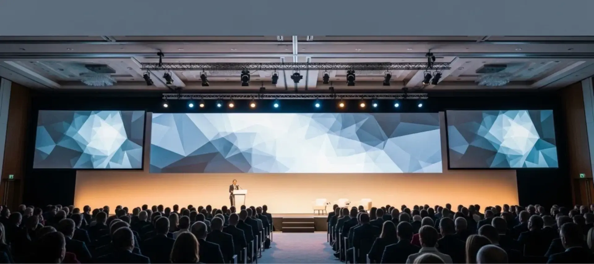 Для камерных конференций на 50-100 человек выбираем закрытые клубы, лофт-пространства с панорамными окнами, рестораны, банкетные залы. Для масштабных событий на 200+ участников — деловые пространства отелей, конгресс-холлы с современной инфраструктурой, залы-трансформеры выставочных центров.