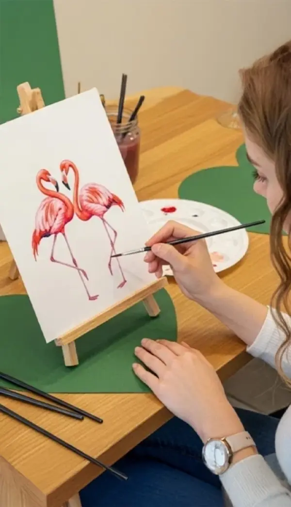 - Для девичника такой арт-опыт превращается в эстетическое развлечение: бокалы вина, легкий аромат напитка, мягкий свет и процесс создания собственной картины создают уют и вдохновение. Это возможность по-настоящему насладиться красотой момента в компании подруг.