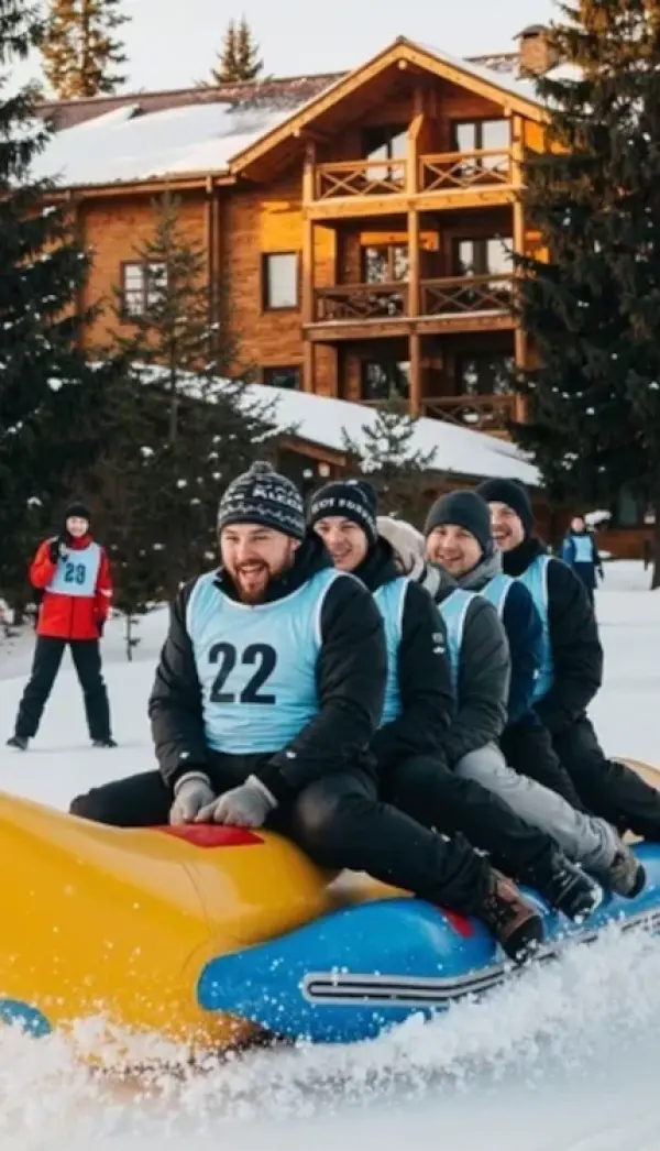 - Зимний тимбилдинг на природе. Загородные клубы, парк-отели, базы отдыха, лесные пространства с оборудованными зонами. Это формат для активных сценариев: зимние эстафеты, строительство снежных башен, катание на санях и тюбингах.