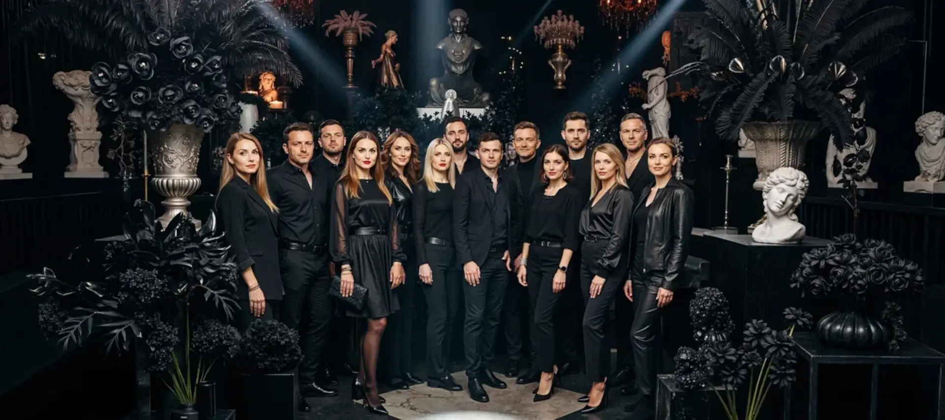 Черный цвет в физике – это отсутствие света. Почти «ничего», пустота, которую можно наполнить любым смыслом. Именно поэтому вечеринка в стиле тотал блэк так гибко подстраивается под задачи бренда и повод: от нуарной истории с оттенком роскоши до минималистичного делового праздника или мистического сценария по мотивам кинематографа.