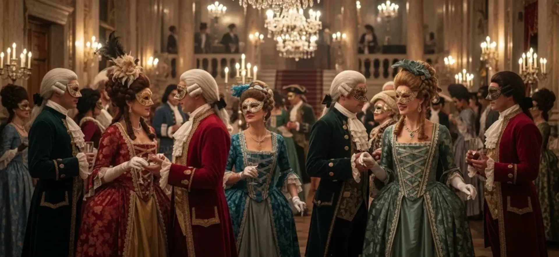 Давайте пофантазируем: Ваши гости входят в зал, где мерцают свечи, звучит живая скрипка и повсюду маски, перья, костюмы. Кто-то перевоплотился в загадочного маркиза, кто-то в дерзкую куртизанку или в шута с грустной улыбкой. И самое главное, каждый будто становится кем-то другим, не собой.