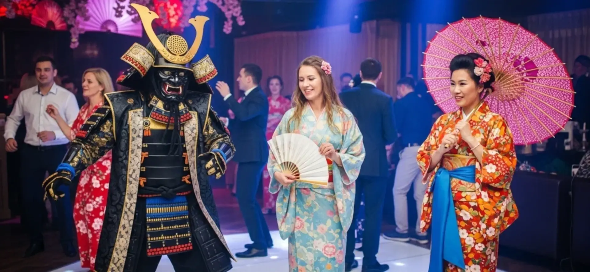 В мировой культуре Япония ассоциируется с аниме, самураями, цветущей сакурой, гейшами и горой Фудзияма. Эти образы легко превращаются в основу для сценария корпоратива или юбилея. Мы предлагаем создать для Вашей команды японскую вечеринку, где каждая деталь, от декора до костюмов, станет частью продуманной режиссуры праздника.
